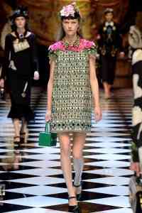 Nu fiecare aspect a fost legat direct de filmul Disney, dar a împărtășit același vibe jucăuș. Princiară, stofa inspirată de confecțiile bărbați a fost realizată în proporții feminine, cum ar fi pantalonii trunchiați și jachetele swingy împodobite cu nasturi metalici supradimensionați. În colecția Dolce & Gabbana pentru toamna 2016 au existat motive florale populare, care apar ca imprimeuri grafice realiste, și aplicații dramatice, așa cum au fost pisicile. Rochii și articolele de îmbrăcăminte exterioară au fost confecționate din materiale lucioase, texturale (acestea păreau să fie lurex sau beteală), împodobite cu franjuri, funde și gulere cu bijuterii. Pentru a închide show-ul, toate modelele au defilat din spatele unui nor de fum, îmbrăcate în rochii roz, roși și argintii.
