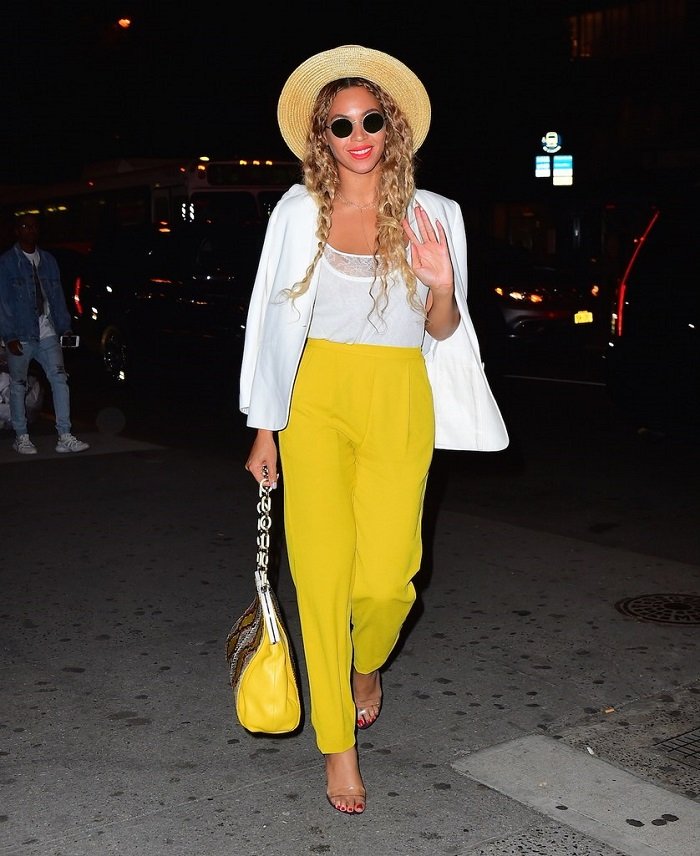 O mulțime de celebrități au adoptat această nuanță imensă, îndrăzneață. Cele mai multe dintre ele au perfecționat deja ținutele monocrome și nu le deranjează să le facă în galben. Aceasta este și culoarea care a domnit pe multe covoare roșii începând cu Premiile Grammy și Gala MET. Jennifer Lopez, Victoria Beckham, Gigi Hadid și Kendall Jenner sunt câteva dintre cele mai mari icoane de modă, care se joacă cu tot felul de haine galbene. Bella Hadid, pe de altă parte, a găsit cămașa perfectă galbenă și o potrivește cu alb-negru.