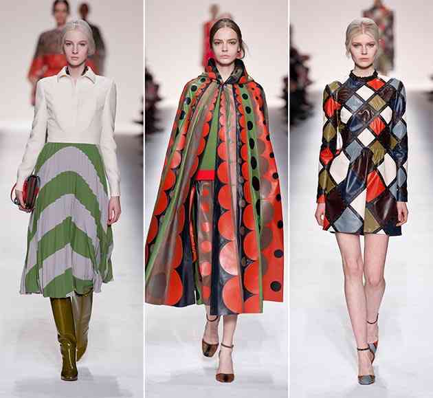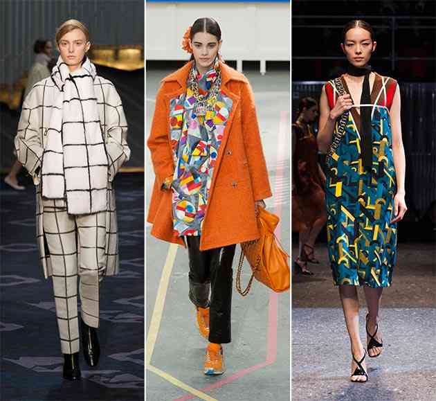 Modele geometrice sunt modalitățile cele mai noi pentru crearea de piese reale pentru designeri. Buline, diamante, modele în carouri și dungi sunt unele dintre cele mai populare alternative la care cei mai mulți creatori au apelat. Astfel, vorbind cu exemple, putem nota alternative cum ar fi Emma Cook, Tod’s, Prada, și Chanel. Modelele punctate prezentate de Valentino și în formă de inimă pe care le-am găsit în colecția RED Valentino merită, de asemenea, menționate.