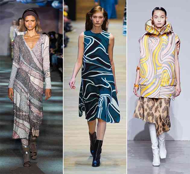 Liniile curbate compun o altă interpretare creativă a formelor geometrice de bază, desene și modele, cu care e deosebit de distractiv de experimentat. Ele sunt menite să creeze impresia de mișcare și ritm. Aceasta este o alegere ideală pentru veșmintele de zi cu zi. Piesele minunate sugerate de Samuji, Acne Studios, Rachel Comey, Marc Jacobs și Guy Laroche sunt unele dintre variantele efectuate cu succes ale acestor printuri.