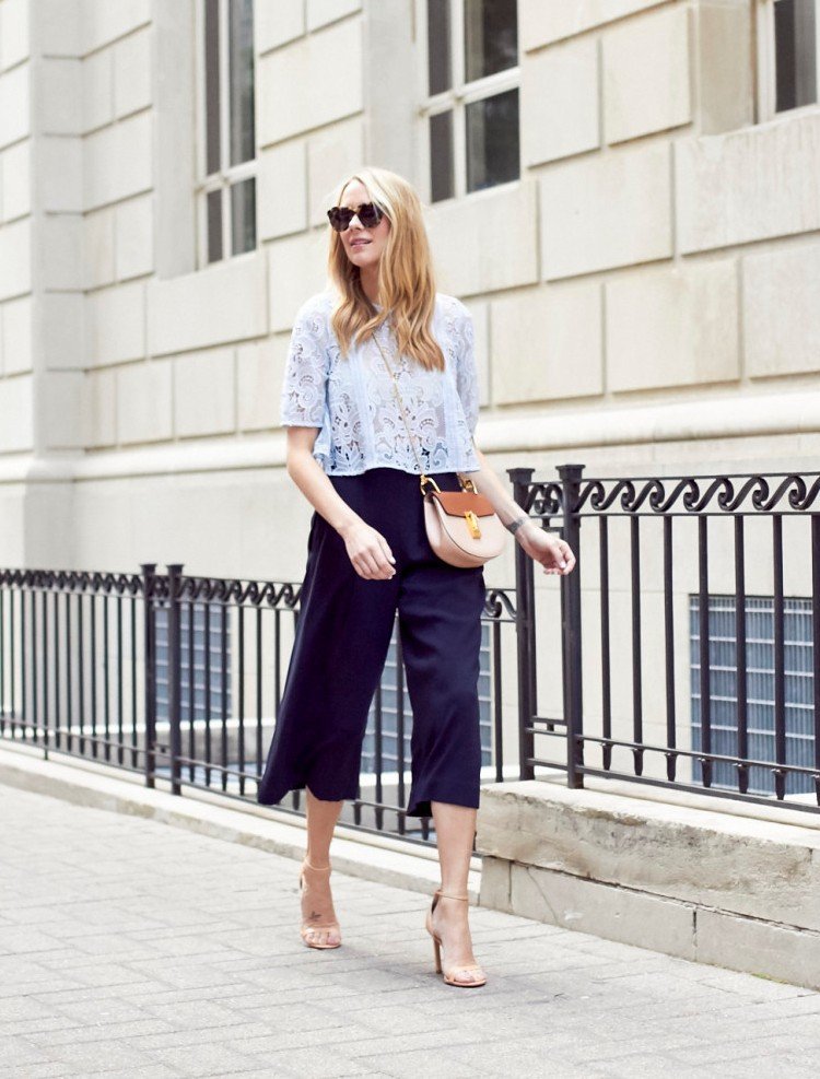Tendința poate fi mai dificilă pentru femeile minione, deoarece vă poate face să arătați și mai scunde. Cheia este de a merge pentru o pereche pantaloni cu taliaînaltă sau pentru aceeași nuanță ca topul pentru a alungi linia piciorului. De asemenea, puteți opta pentru o pereche de tocuri nud pentru a vă extinde linia piciorului, prin urmare, făcându-vă să arătați mai înalte vizual.