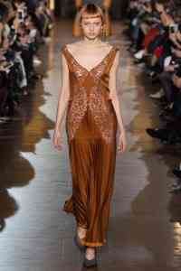 Dar, Stella a decis să prezinte pe pistă unele rochii plisate maxi în nuanțe ca ruginiu, maro, nisip și negru, precum și câteva topuri cu paiete de aur și argint, toate acestea demonstrând aripi de lebădă lucrate fie prin dantelă sau paiete.