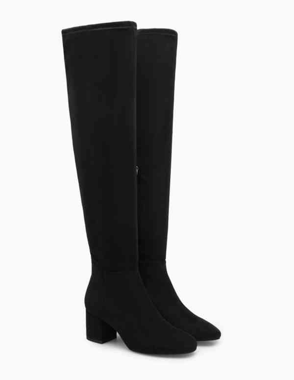 - Total glamour cu un accent chic, cizmele elastice până la genunchi negre, împodobite fermoar metalic auriu și cu toc înalt sunt, de asemenea, printre elementele must-have interesante, care însoțesc orice piesă fabuloasă a sezonului.