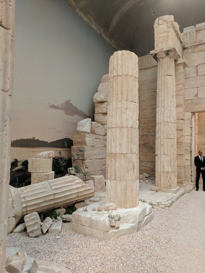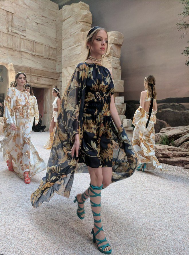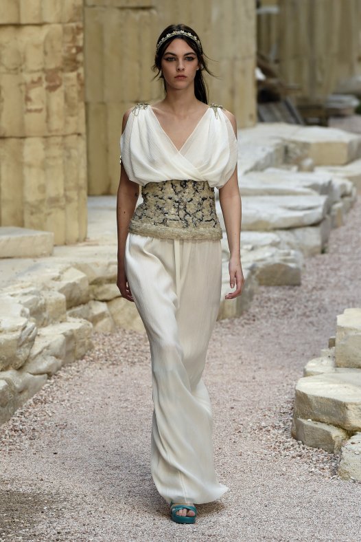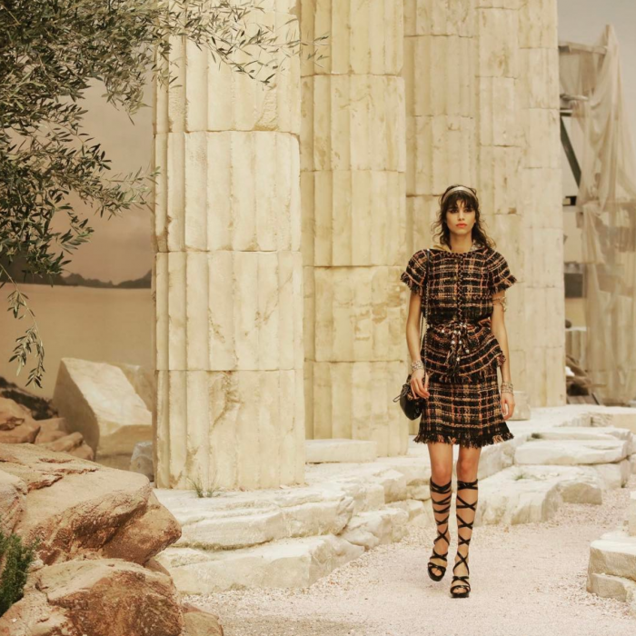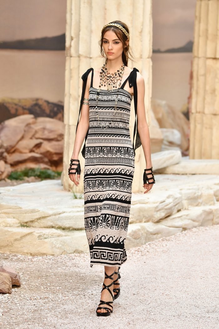În scopul prezentării noii sale colecții de stațiune, coloanele ionice au dominat în interiorul Gran Palais. În fundal, spectatorii lui Chanel au putut vedea un apus subtil grecesc pictat pe perete.