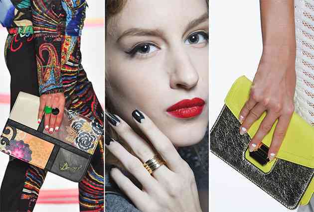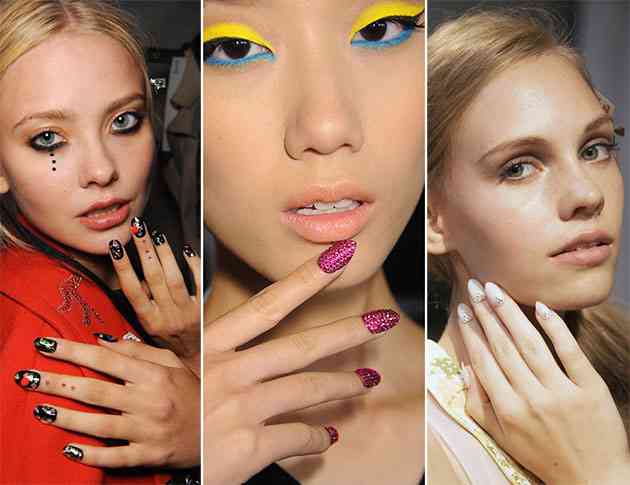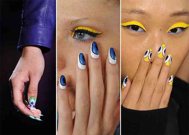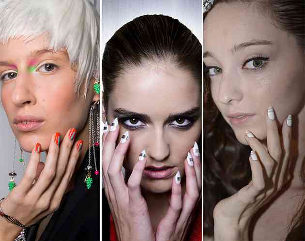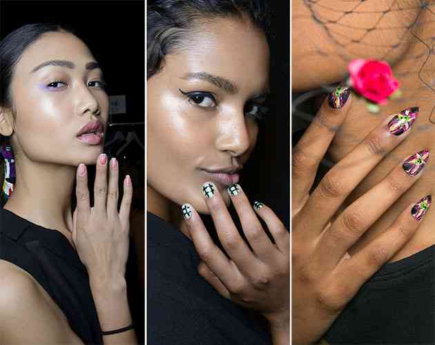 În cele din urmă, venind la opera de artă a unghiilor mai sofisticate, putem nota variantele Emerson, în cazul în care nivelul de sofisticare și de competență este la maxim cu aceste imprimeuri grafice și florale. Alte opțiuni curioase și spectaculoase, sunt cele de la Chadwick Bell și Katie Gallagher, care au optat pentru forme diversificate, desene și modele pentru fiecare unghie, care combină foarte multe unități într-una singură. Cu toate acestea, în măsura în care se pot observa pentru sezonul viitor, ele au tendința de a fi mai mult identice decât diferite, fiind puse cu variante la fel concepute și colorate, inclusiv aspectul nud, și variante monocrome. Antonio Marras, Salvatore Ferragamo, Anthony Vaccarello, Giorgio Armani, Antonio Berardi și Gabriele Colangelo sunt principalii experți care au ales aceste principii.