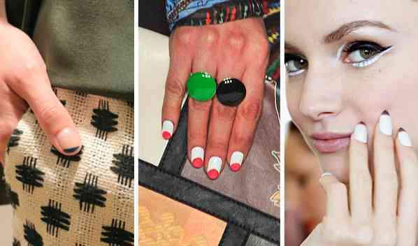 Trecerea de la opțiuni monocrome la cele mai diversificate variante proiectate, afirmă apariția mai multor modele noi folosite pentru efectuarea de printuri de unghii. Abordarea globală minimalistă este destul de evidentă cu aceste modele. Unul dintre acestea sunt finisajele în formă de semilună pentru vârfurile unghiilor, care pot fi puse cu o nuanță asemănătoare cu fundalul, sau unul capabil de a intra în duo cu ea. Aceste opțiuni pot fi observate la Alice + Olivia, Lela Rose, Desigual, Jenni Kayne, Alexis Mabille, și Louis Vuitton.