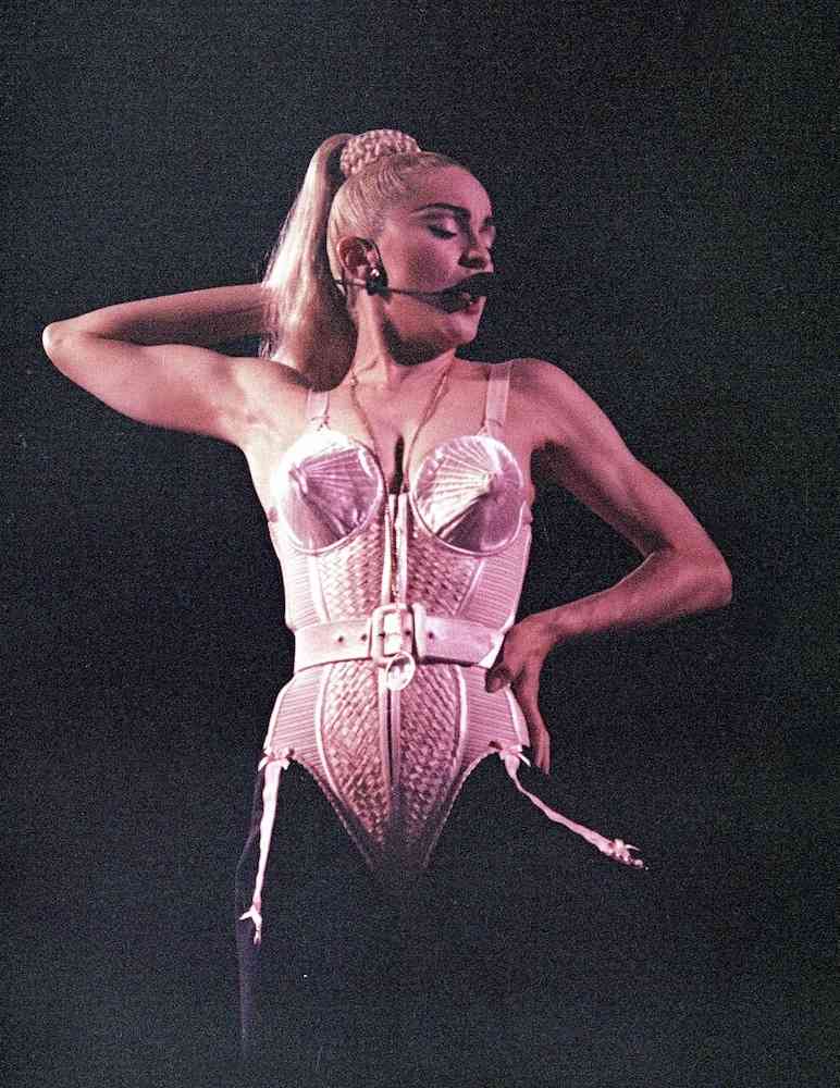 Cea mai celebră ținută a Madonnei este un corset roz pastel cu conuri ascuțite de la Jean Paul Gaultier. Relația cu designerul întotdeauna a fost foarte apropiată, mai ales în anii 90.