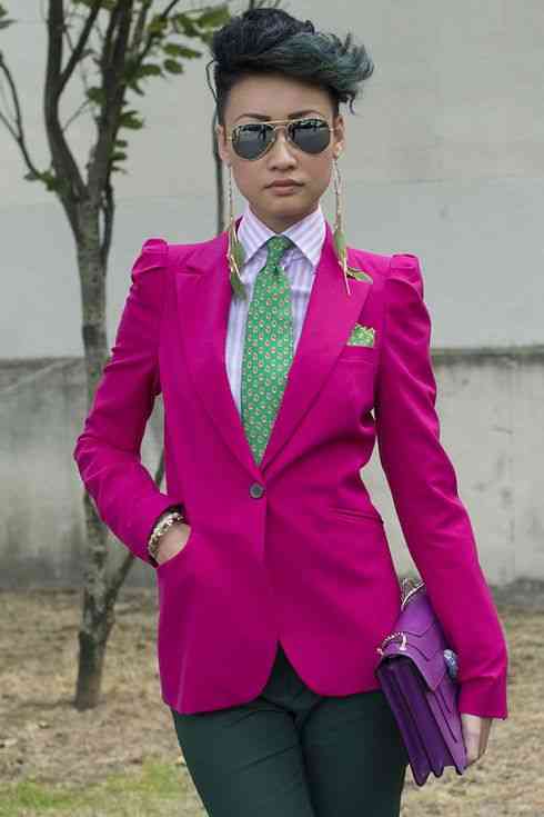 Paleta de culori este variată, în funcţie de ocazie, de la culori reci, sobre, la cele pastelate sau chiar varianta culorilor mai îndrăzneţe! Mai important decât atat, atitudinea dă cea mai puternica pată de culoare. Surprinde colegii de birou cu outfituri cât mai masculine.