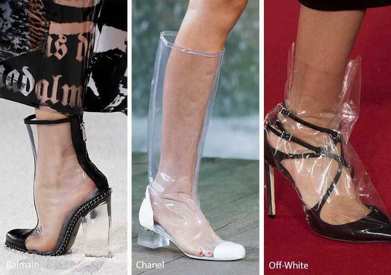 Printre toate modelele de pantofi transparenti care au fost vazute in acest sezon, au existat si tocuri mai inalte standard si sandale cu toc inalt, cu elemente de vizibilitate, perfecte pentru o vacanta pe plaja.