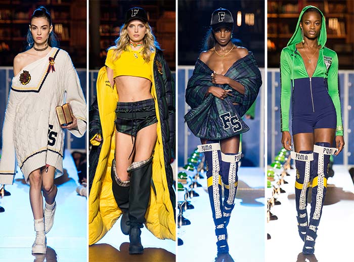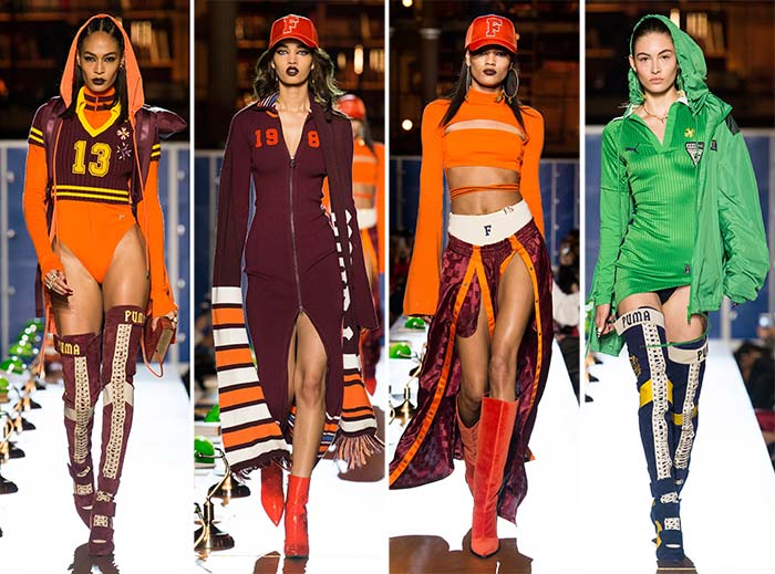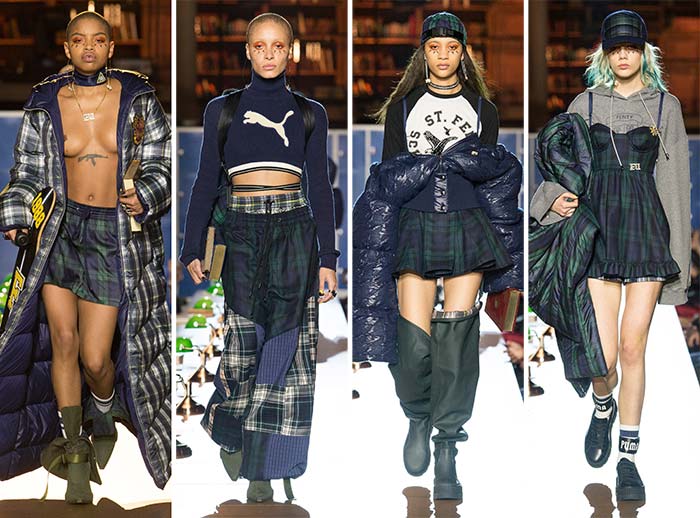Pentru a păstra lucrurile pe drumul colegial, designerul a prezentat colecția în Biblioteca Națională a Franței pe o pistă mărginită de cărți. Rihanna a început show-ul cu modelul Woods Slick purtând o fustă în carouri și o jachetă matlasată. Designerul a rămas fidel inspirației de design. Alte piese, cum ar fi jachete sport, care au avut aceeasi atmosferă clasică Puma, dar, în schimb prezentate cu decolteuri și decupaje.