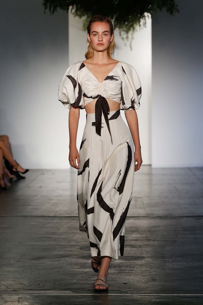 Desenele au elemente artistice interesante. Nu am putut pierde țesătura albă cu imprimeuri negre care amintesc de brushstrokes. Fusta largă tricotată, combinată cu o un top cu mâneci largi, este un must-have de vară. Există, de asemenea, un set foarte cool tricou, pantaloni scurți și o curea largă așezată pe talie.