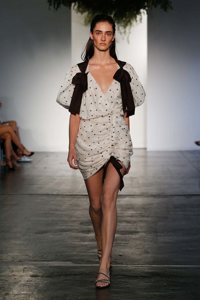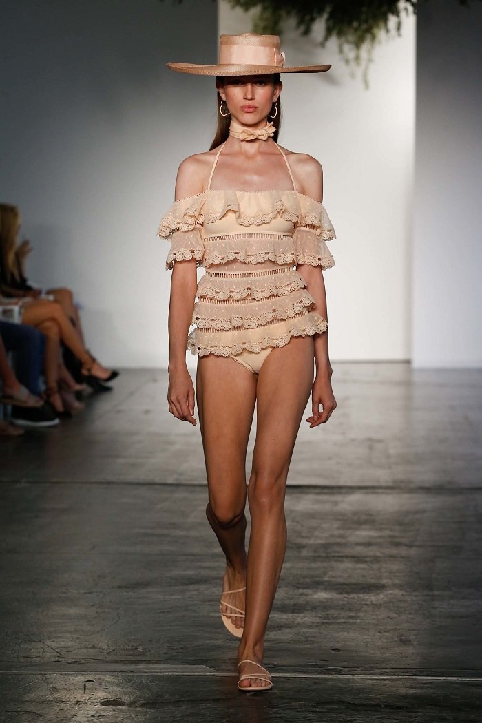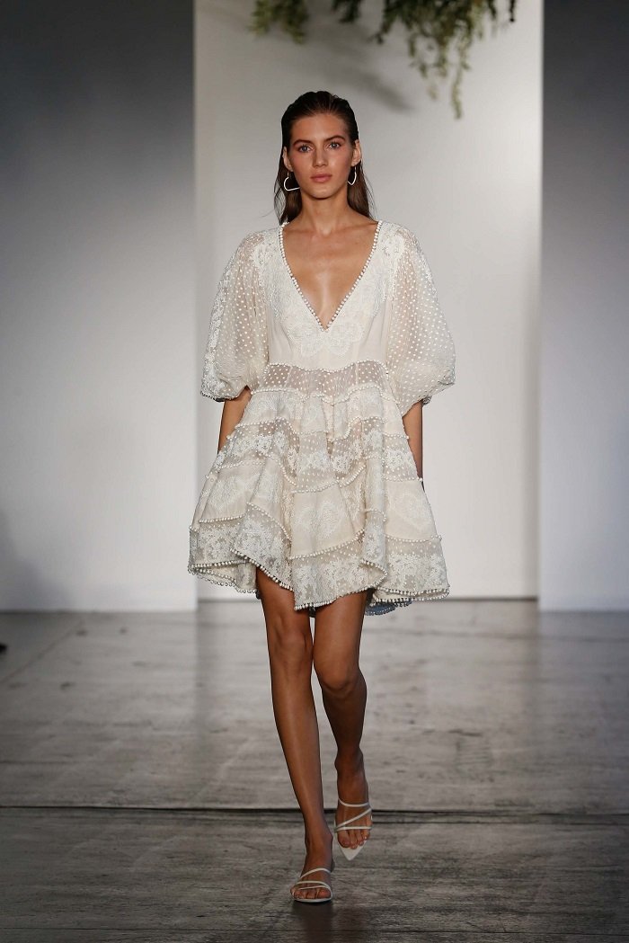 Vibrația latină poate fi văzută în varietatea de mânecuțe. Le puteți vedea pe rochii, pantaloni scurți, bluze și chiar costume de baie. Bulinele Polka și-au găsit locul și în colecția lui Zimmermann. Pe lângă pozele, dungile și floralele, cele mai remarcabile printuri din colecție sunt inimile negre mici. Dansul distractiv de vară oferă o notă romantică colecției Resort 2018. Diferitele țesături, amprente și desene fac din colecția să fie foarte romantică, feminină și îmbinată în același timp cu elemente ale stilului latin cald.