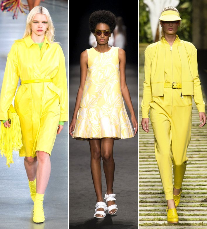 Galben a condus pistele din Milano de sus până-n picioare, de la rochii și pardesie din piele până la ciorap și saboți. Aproape fiecare nuanță de galben a apărut la Gucci, Emilio Pucci, Ferragamo.