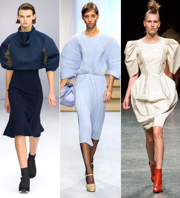 Fie că sunt sub formă de manșete foarte lungi, mâneci balon, umeri supradimensionați, există o mulțime de atenție acordată la ceea ce se petrece în aceste zile. Jil Sander a prezentat o serie de sacouri, rochii și pardesie echipate cu uriașe pampoane de umăr și Dsquared2 ne prezintă mâneci supradimensionate pe jachete.