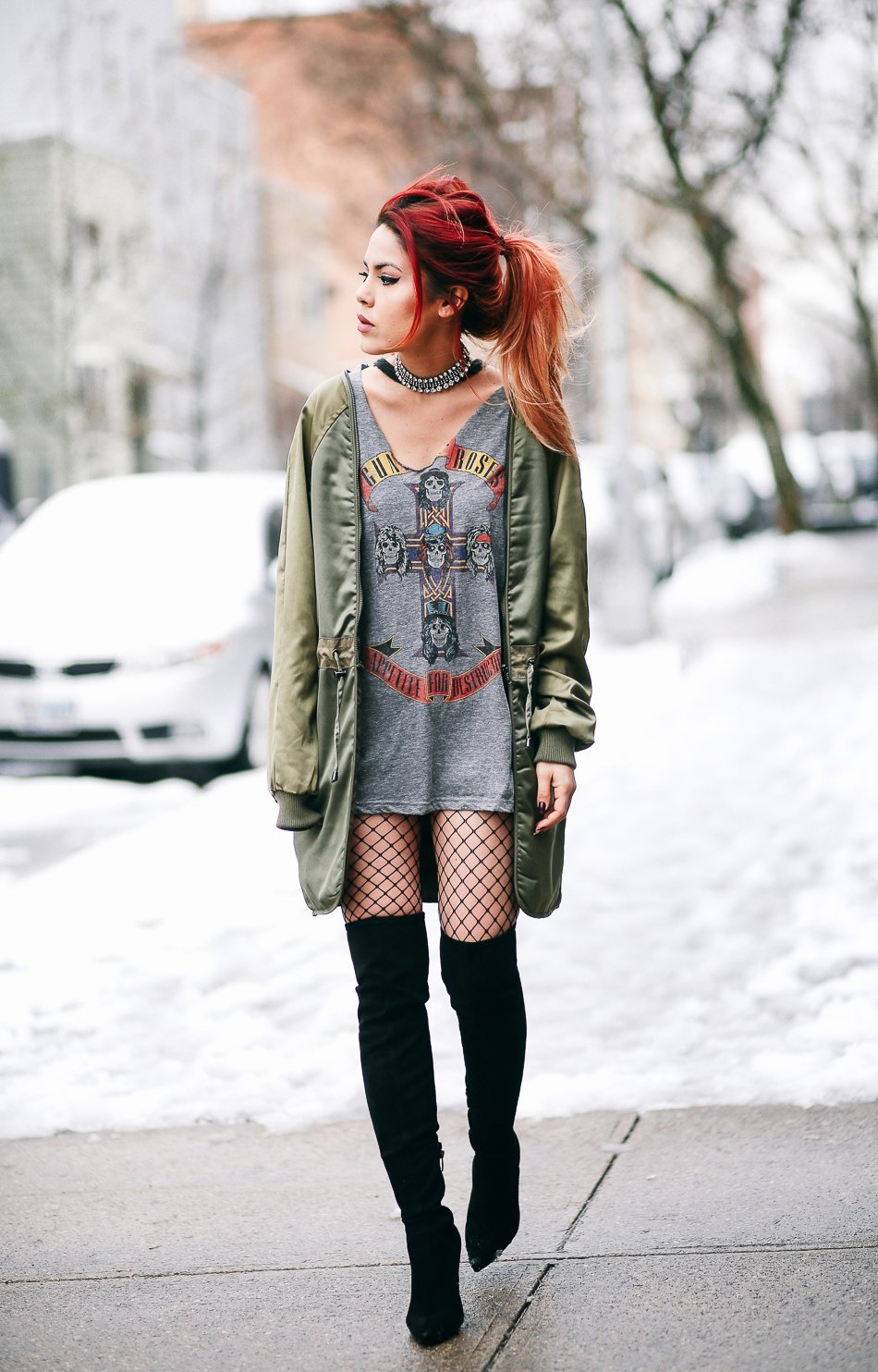 Purtarea de fuste midi cu ciorapi plasă este o combinație minunată. Dacă nu doriți să arătați „prea multă plasă” această idee va fi foarte utilă. Combinați cu cizme sau botine.